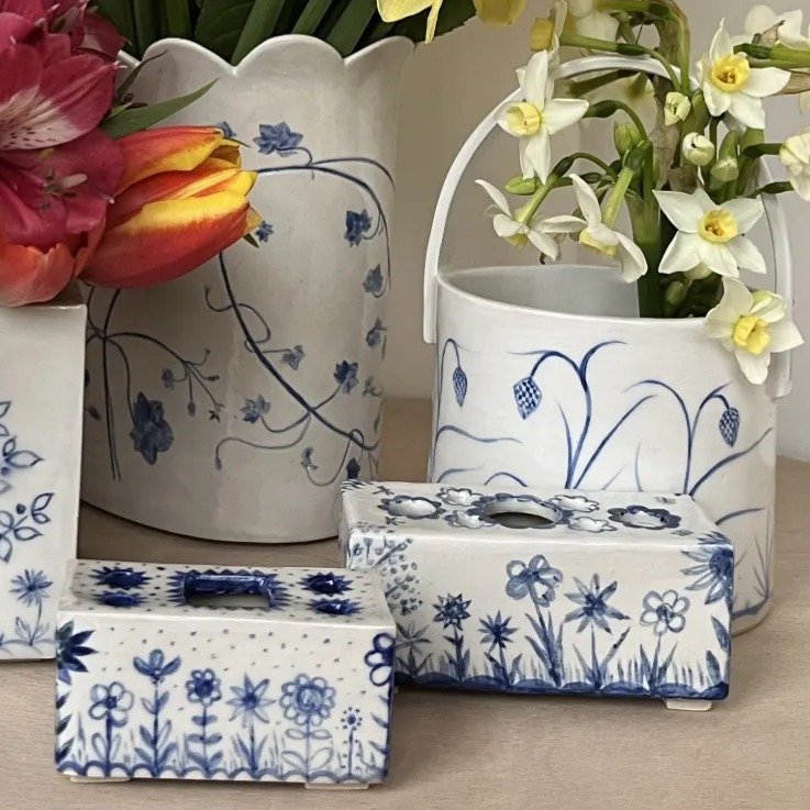 I am a visual artist; and have loved making things all my life. My blue and white flower bricks began with an idea for an anniversary gift. Individually hand crafted, each one has its own unique charm, an inner smile, and a connection with nature. I am continually developing my making process, and my clay journey continues. Making is happiness!