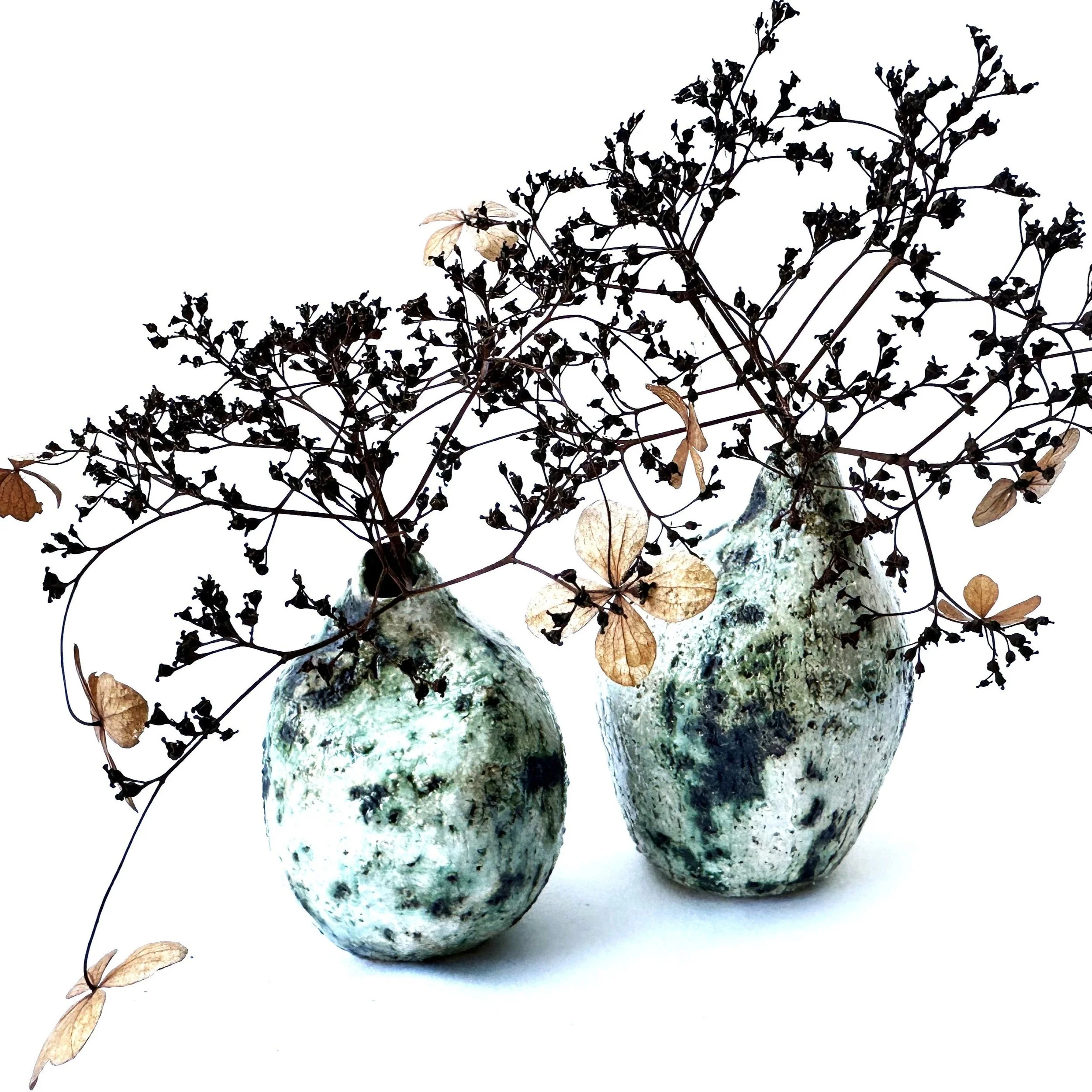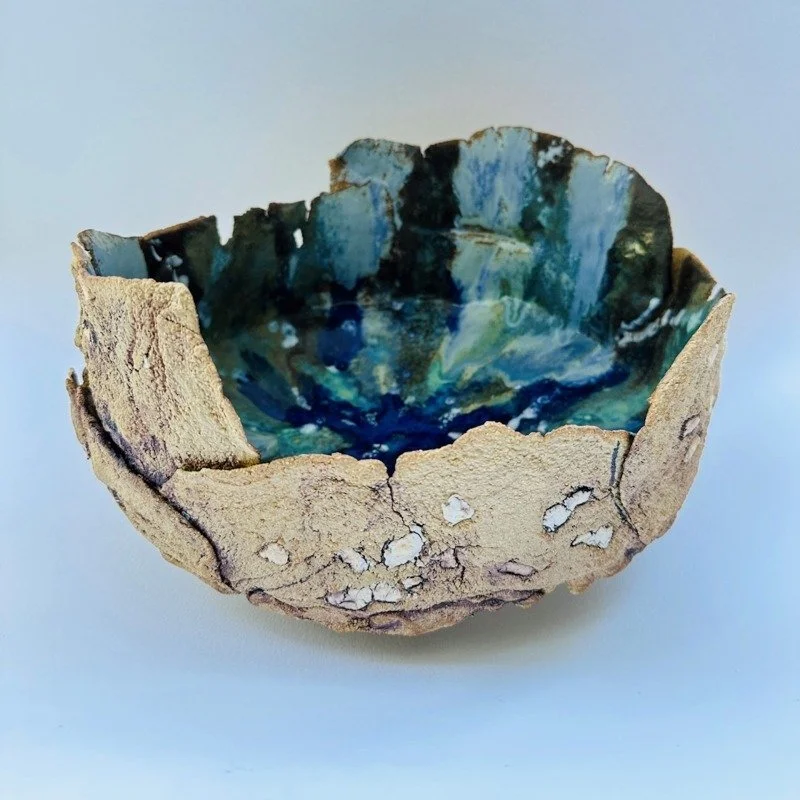 I hand build pieces inspired by forms and textures from the landscape and colour palettes from nature.